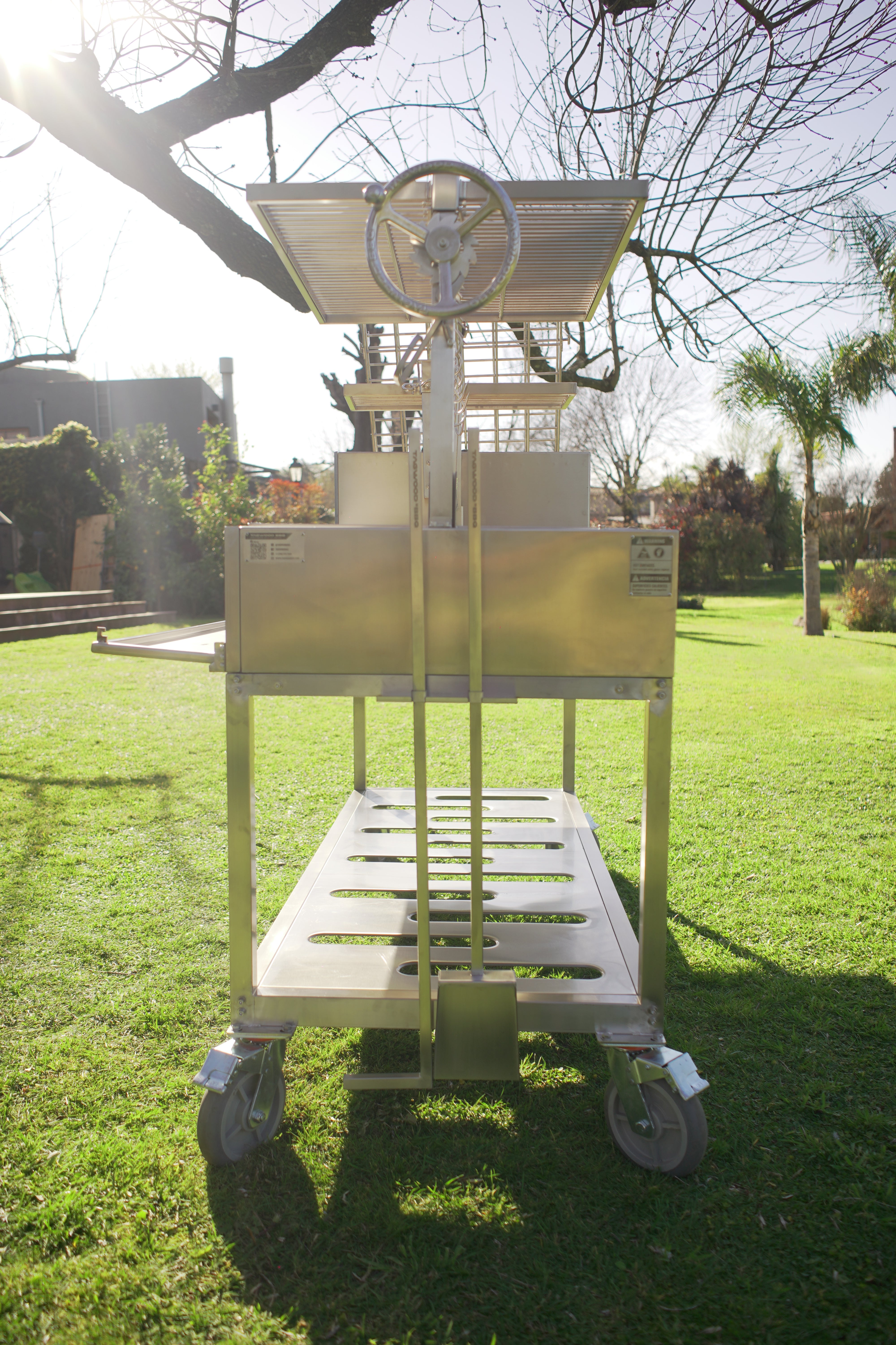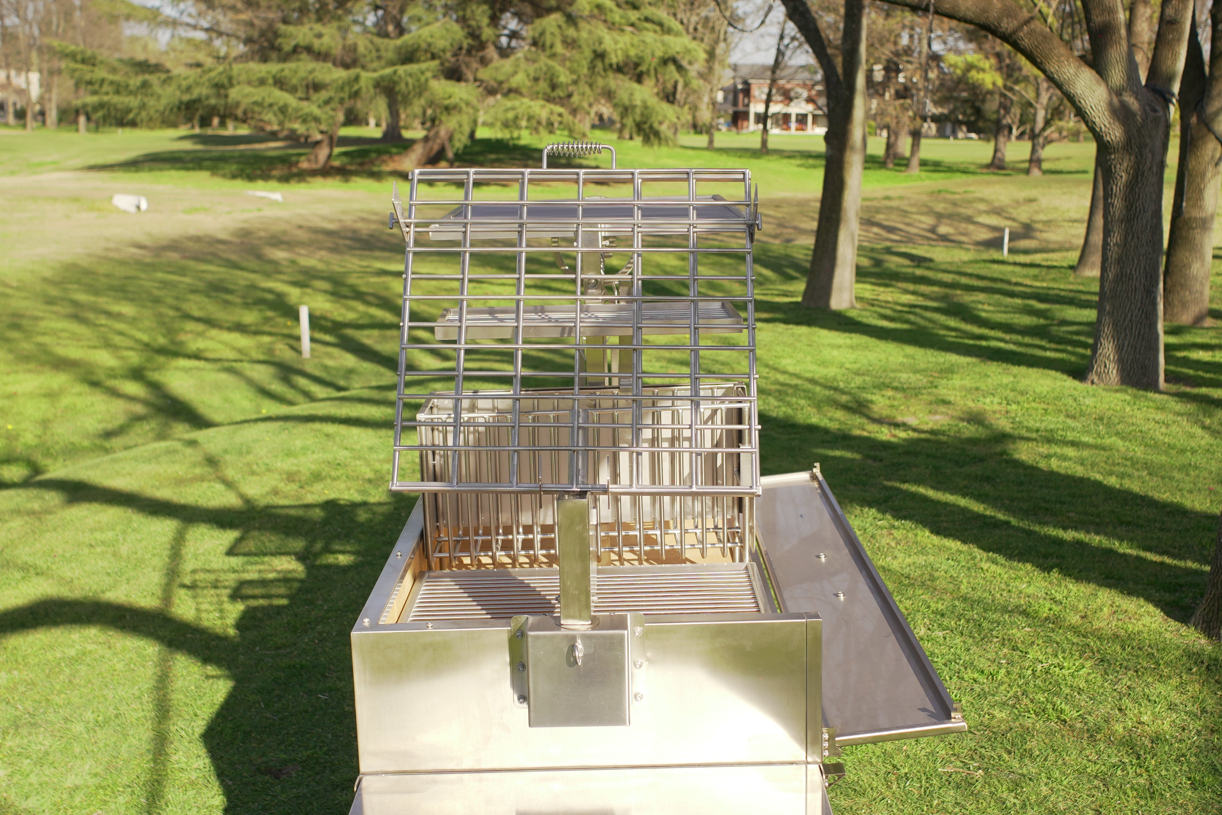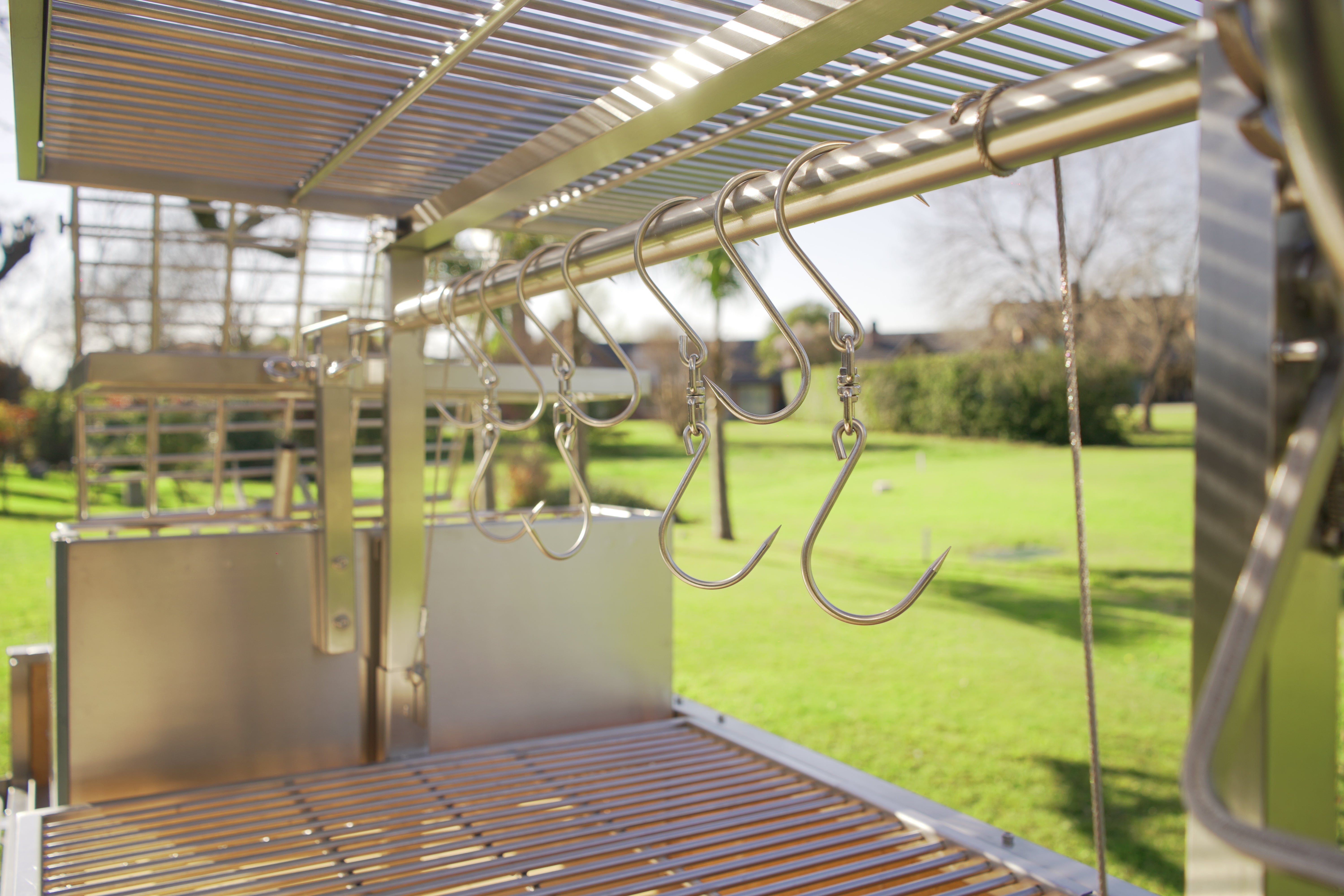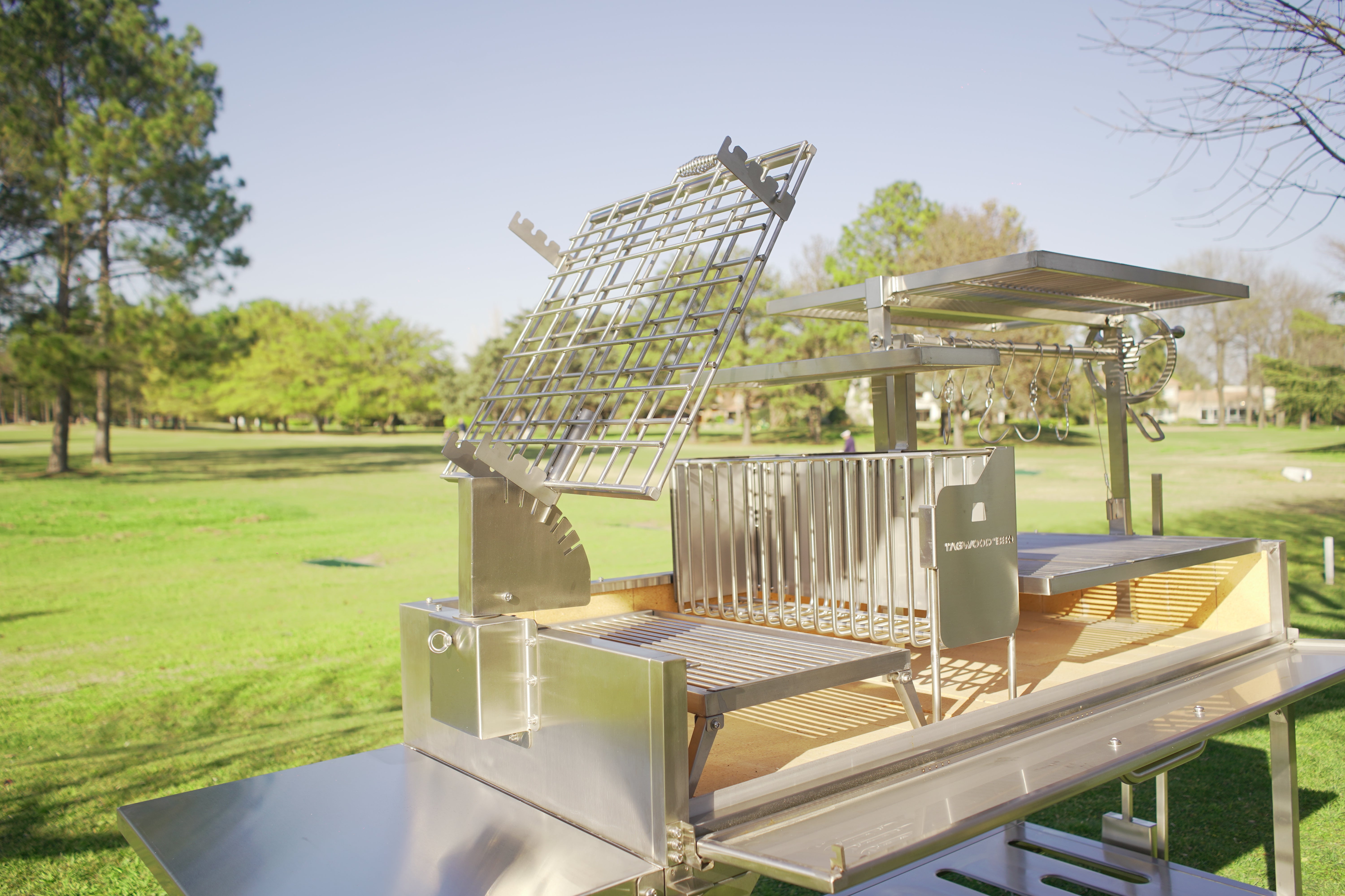 Made entirely of SS 304. Regulate the height manually and innovative asador style with OPEN FIRE cooking. With 360 rotation for easy handling.