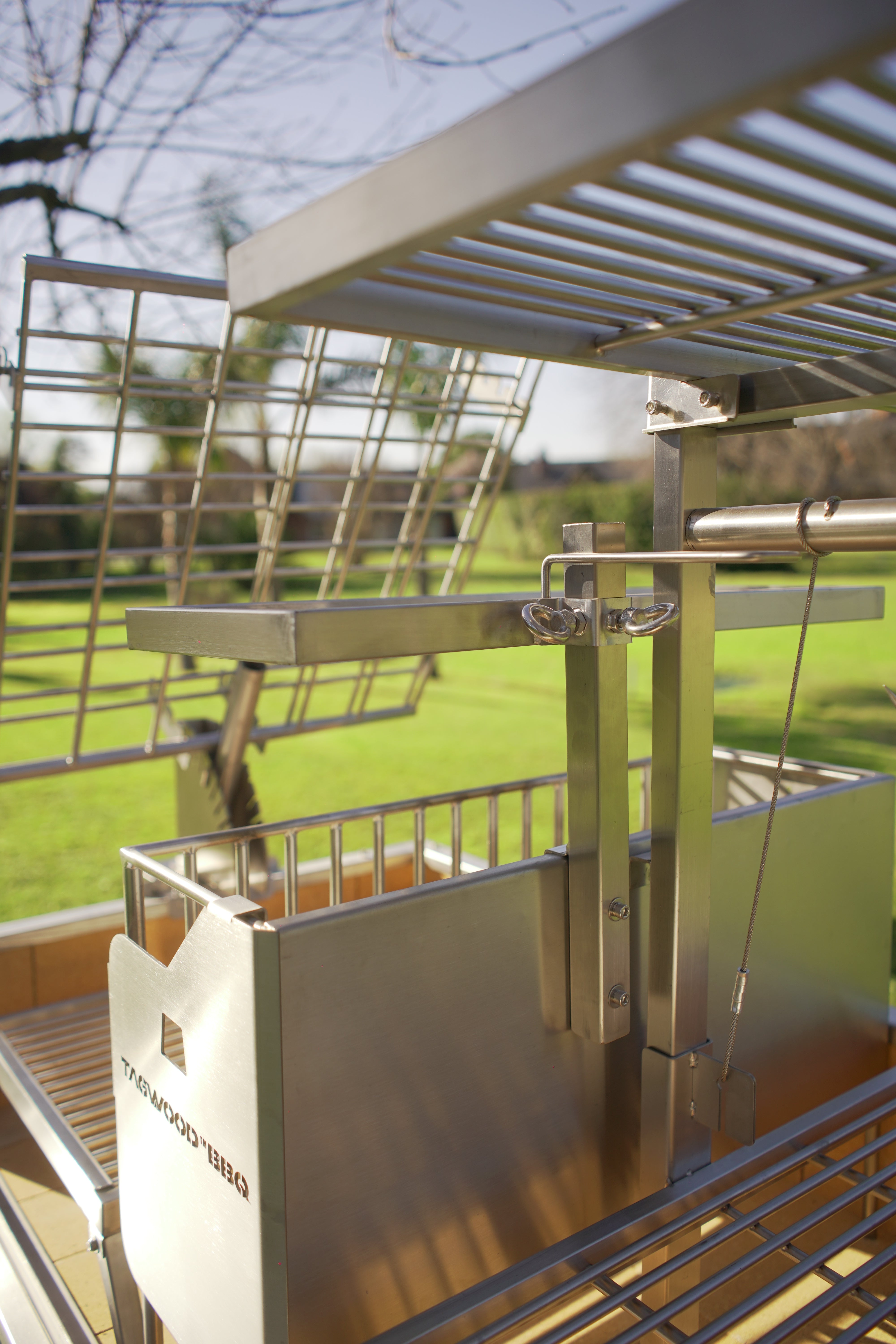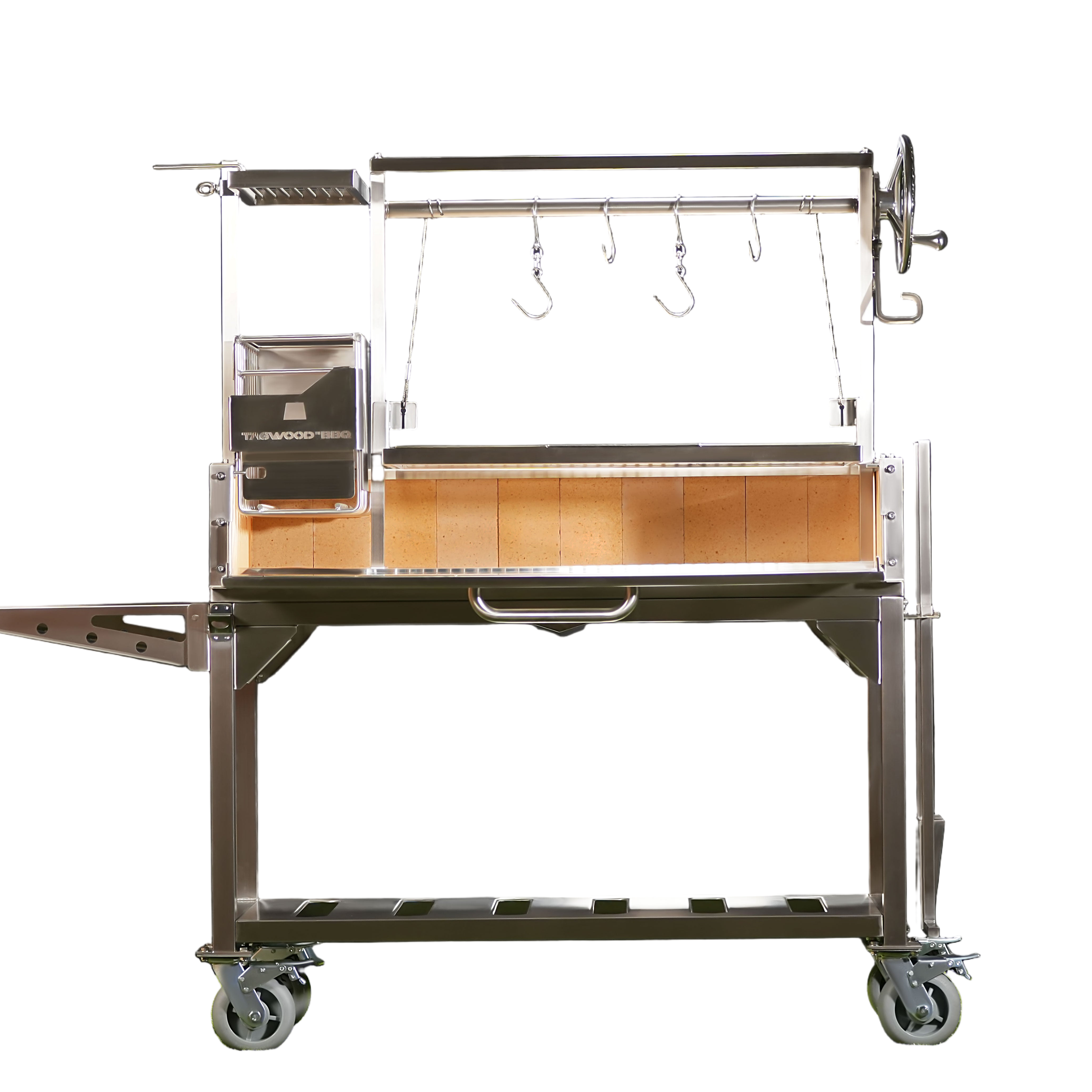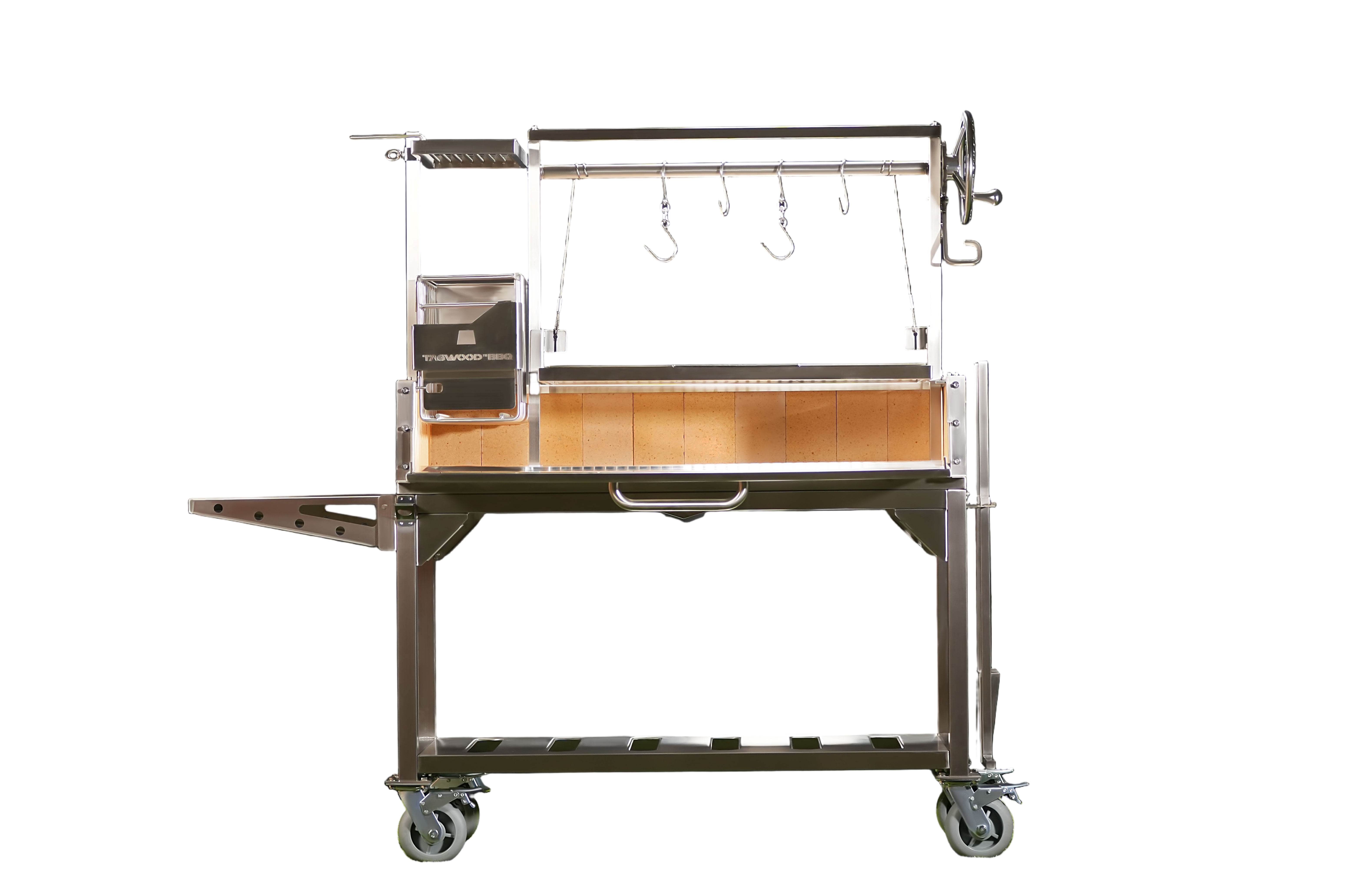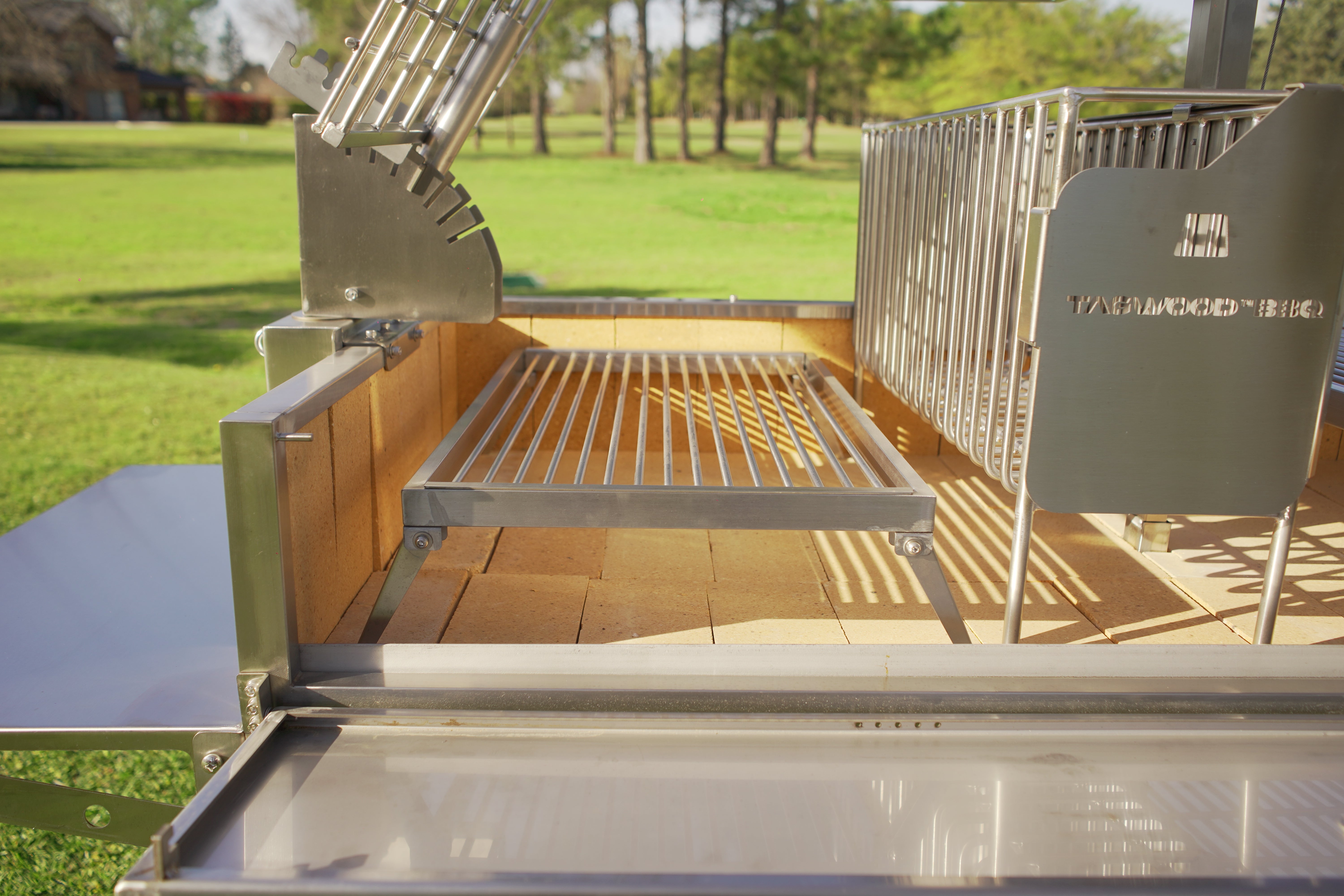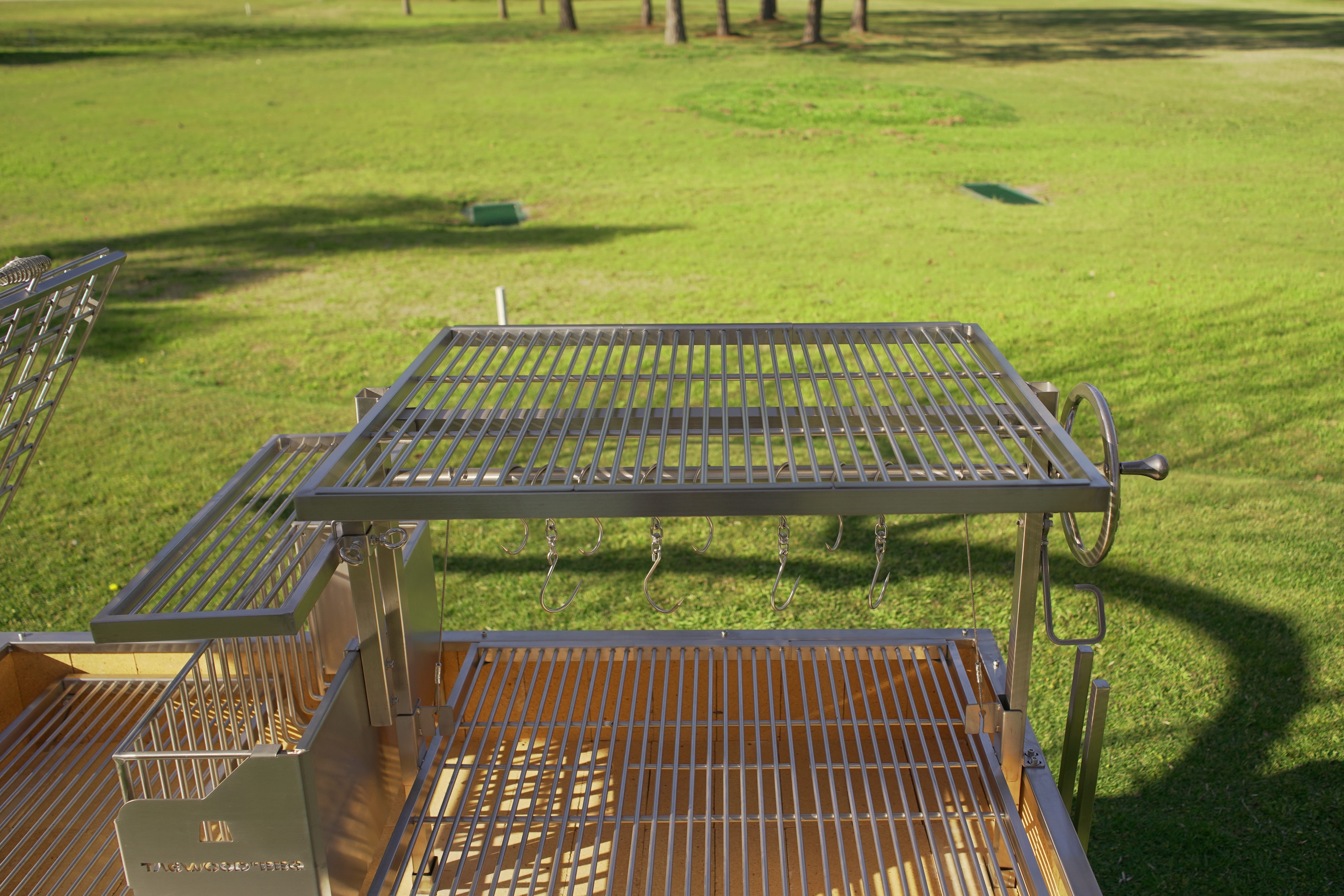 Made entirely of SS 304. Regulate the height manually and innovative asador style with OPEN FIRE cooking. With 360 rotation for easy handling.