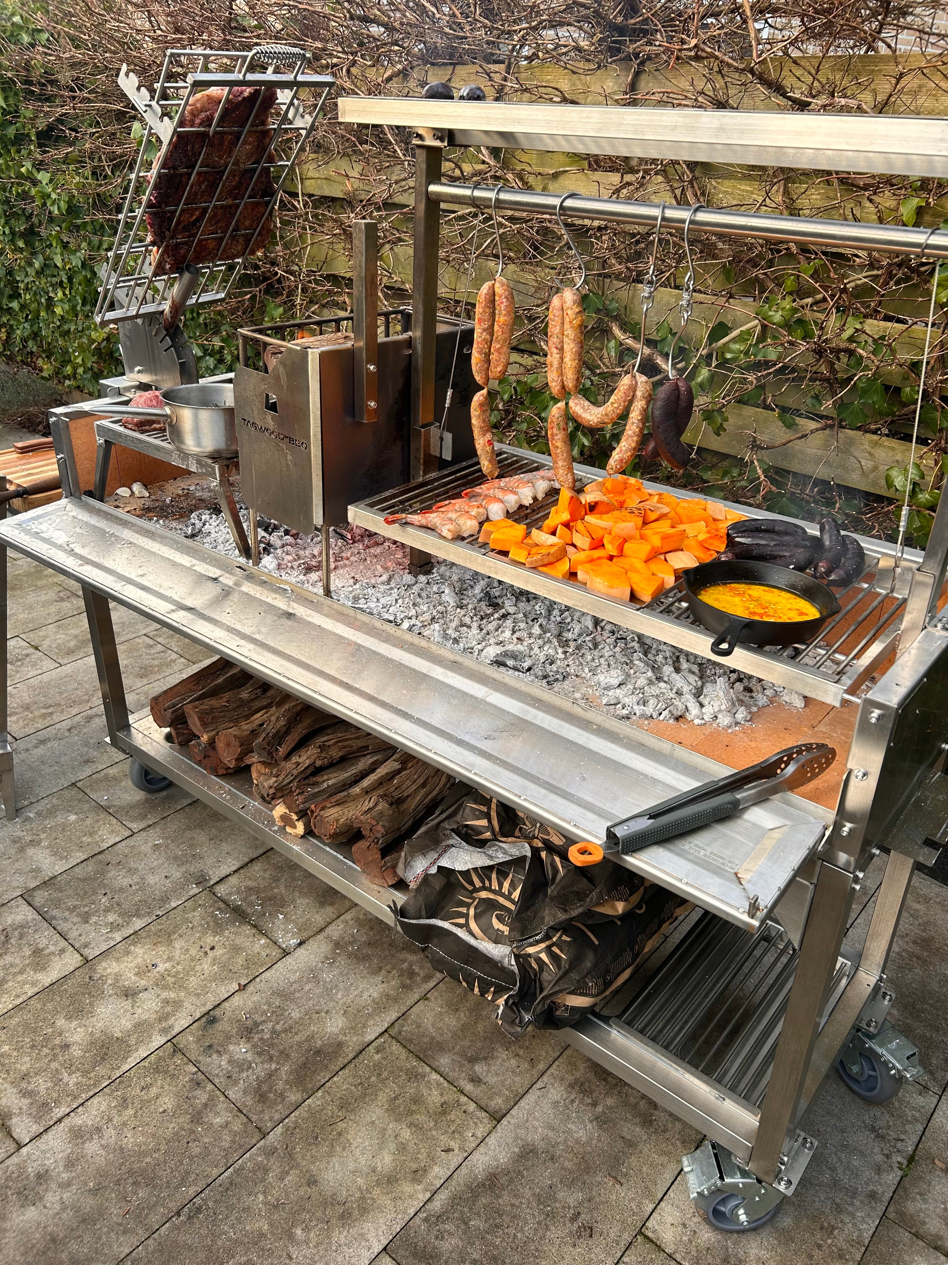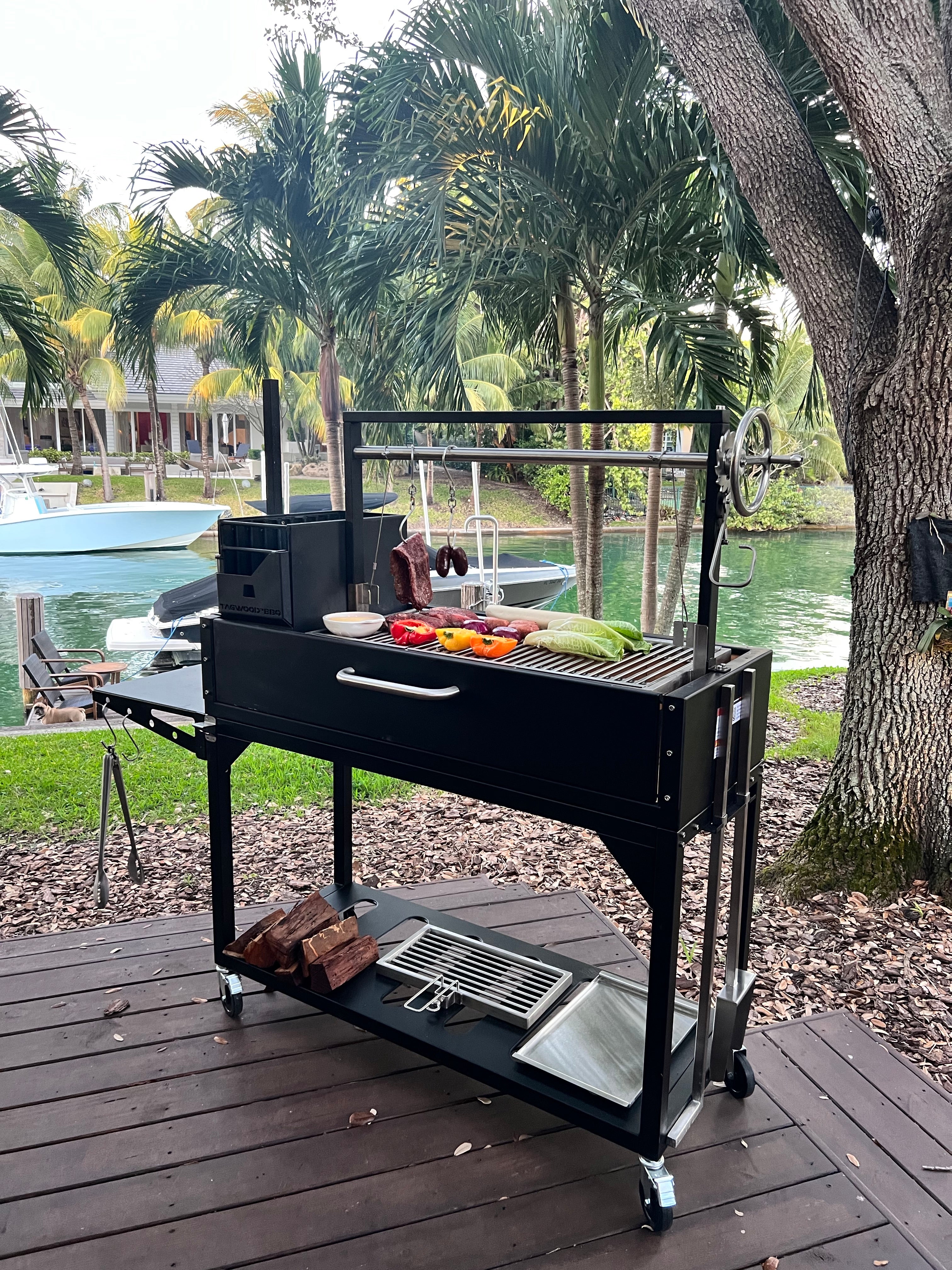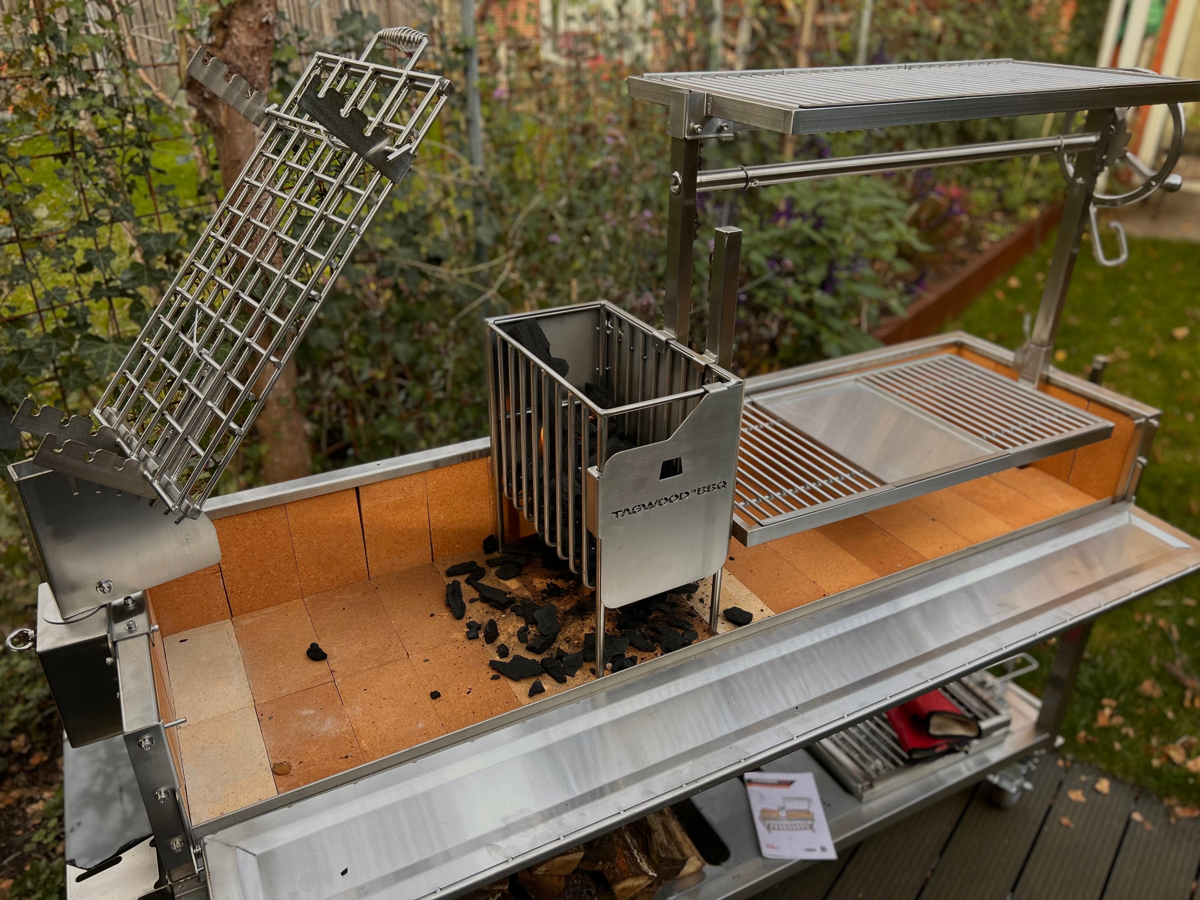 Absolutely in love with my new Tagwood. The grill is as great as the customer service. I was walked through every single detail to find the grill that fit my needs. The grill is built like a tank. The fire box makes it easy and convenient to have hot embers ready on demand. Open fire cooking at its best