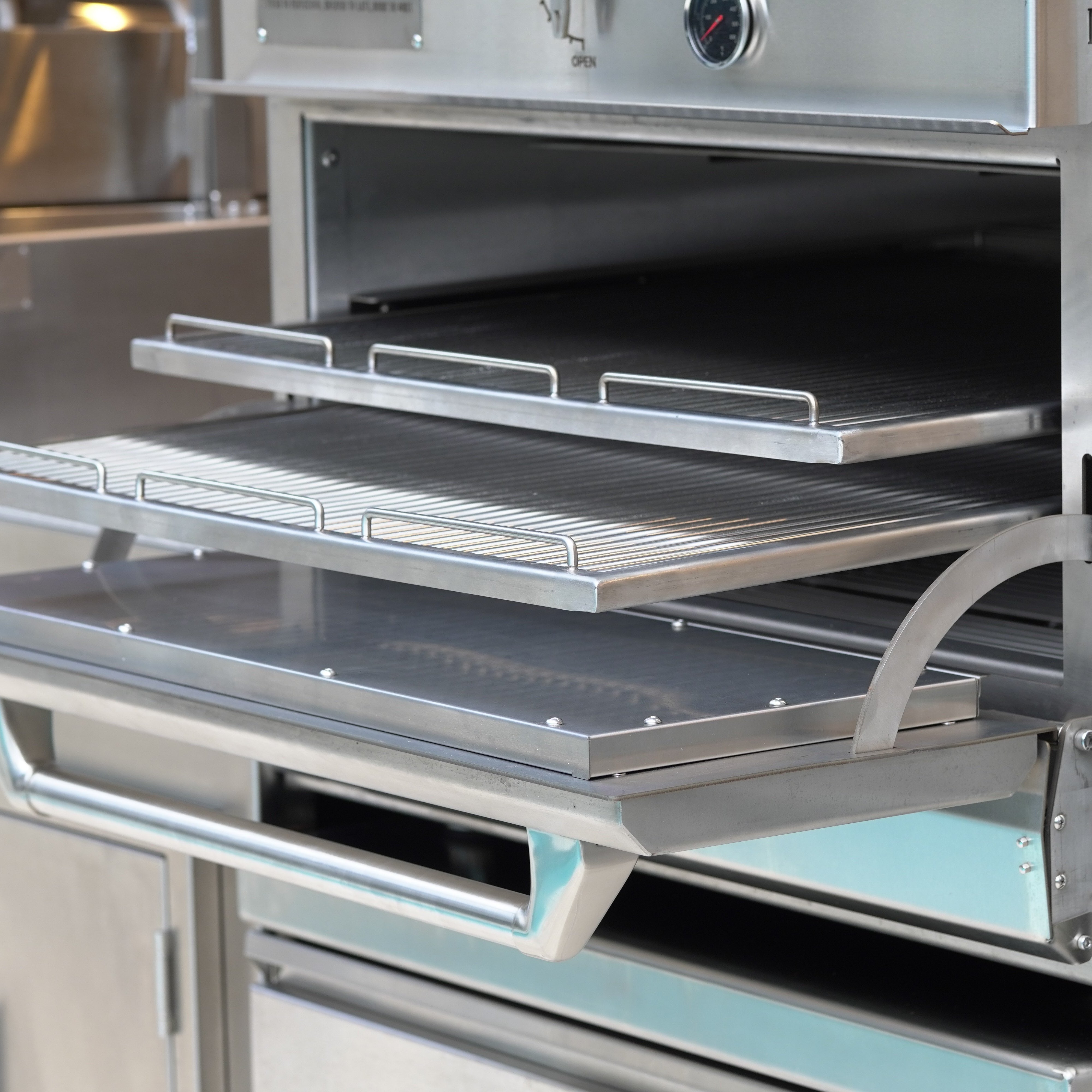 Unsere Grills werden aus hochwertigem 304-Edelstahl gefertigt und bieten höchste Haltbarkeit und Witterungsbeständigkeit. Damit stellen sie sicher, dass sie den intensiven Anforderungen des professionellen Einsatzes standhalten.