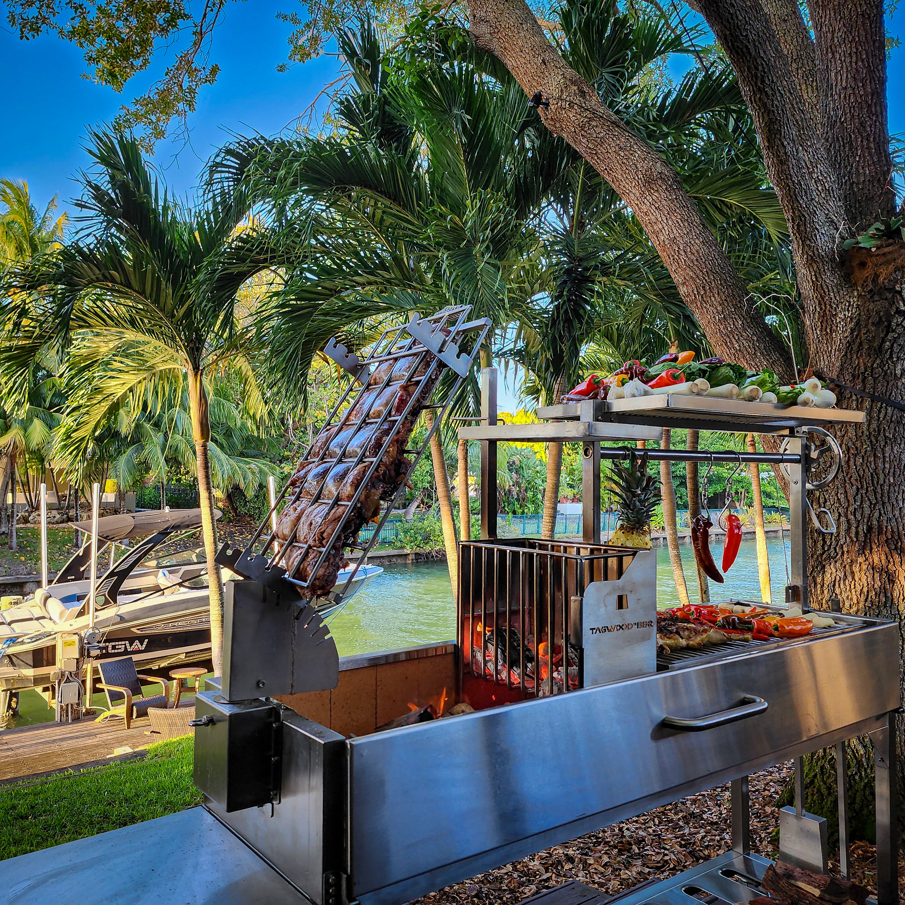 Absolutely in love with my new Tagwood. The grill is as great as the customer service. I was walked through every single detail to find the grill that fit my needs. The grill is built like a tank. The fire box makes it easy and convenient to have hot embers ready on demand. Open fire cooking at its best