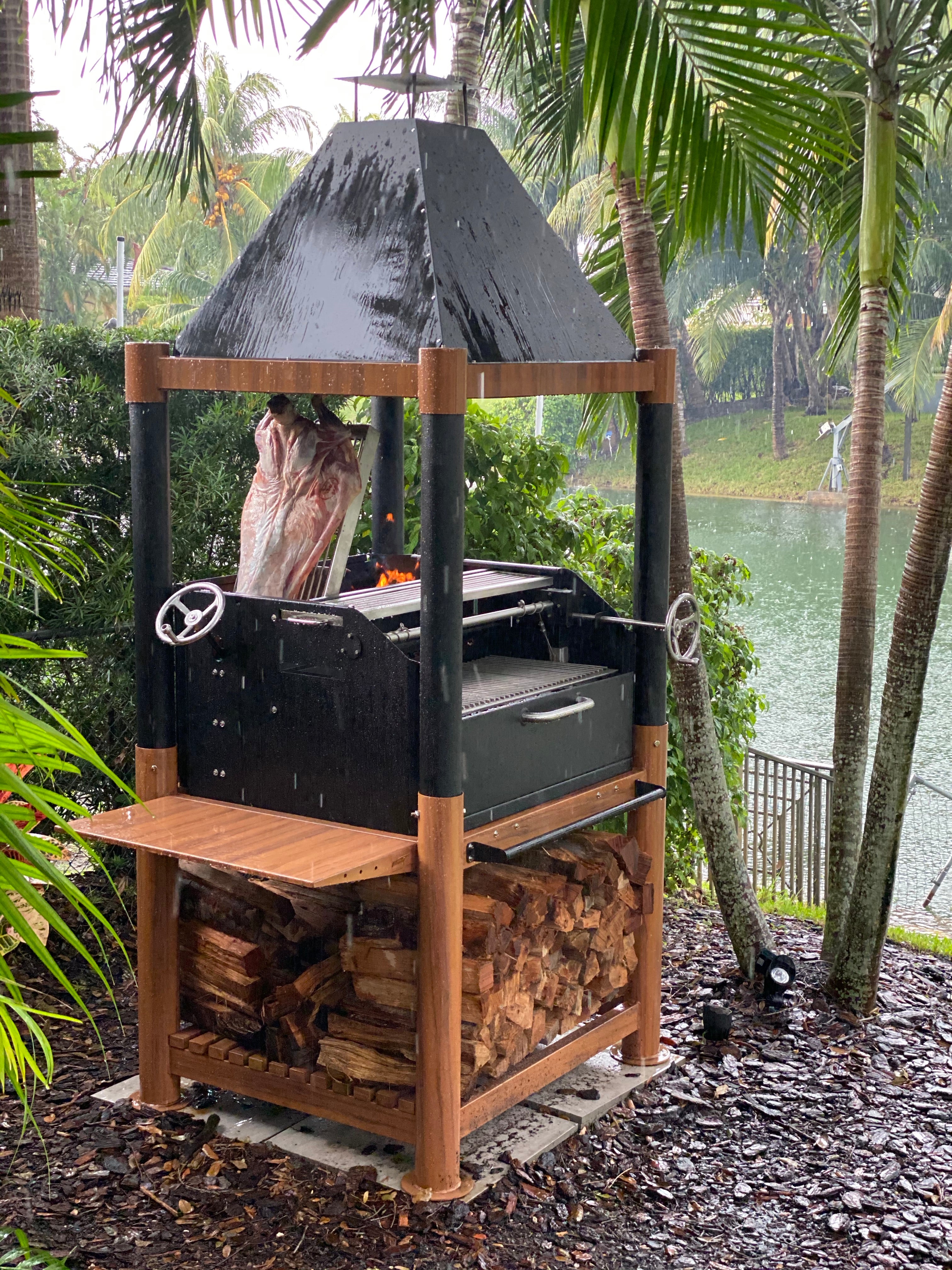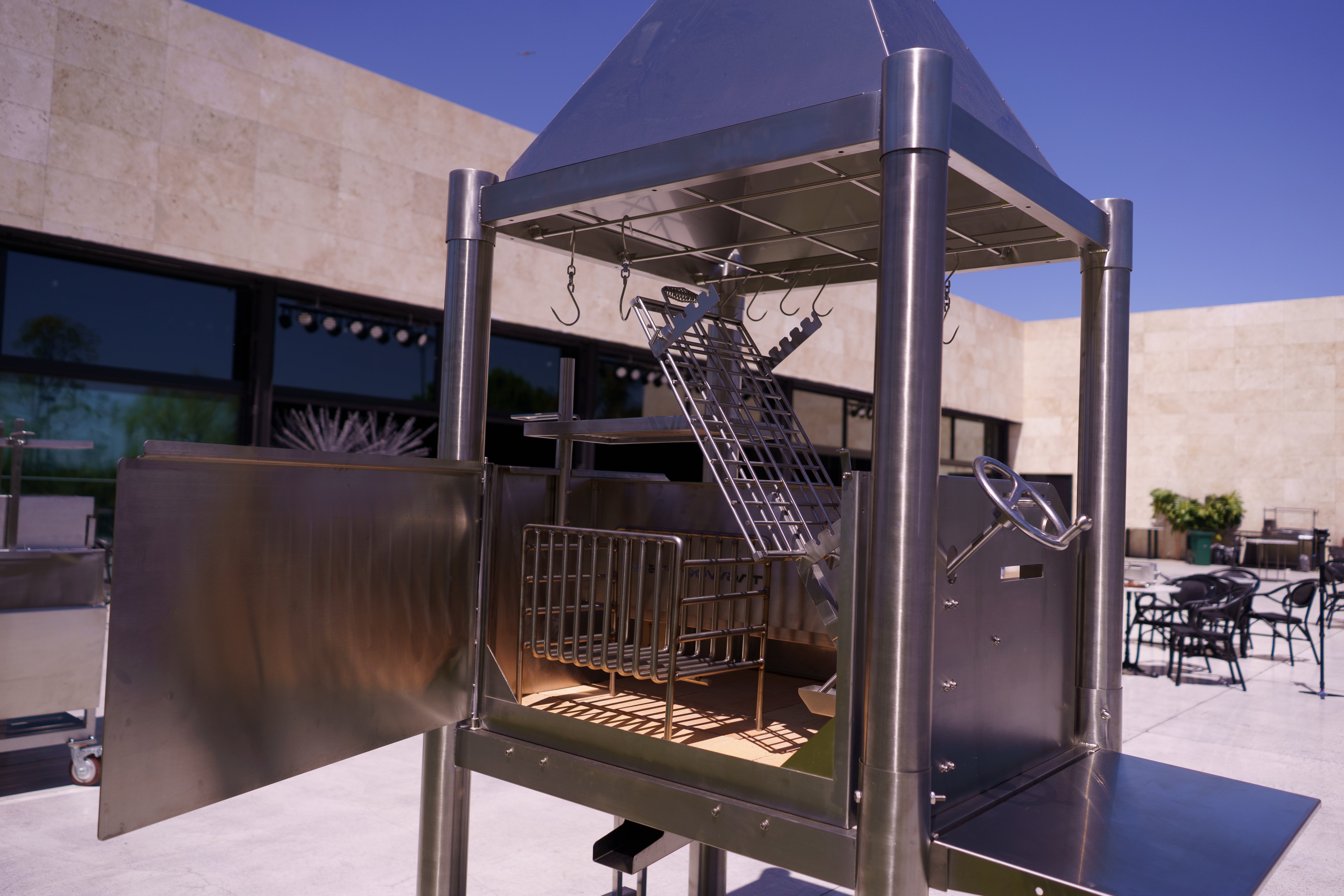The firebox, also known as a brasero, streamlines the process of lighting wood or charcoal, making it faster and requiring less effort. It ensures the fire stays lit and keeps it distanced from the food. Whether you prefer firewood, charcoal, or a mix of both, this feature accommodates your grilling style. For optimal results, lump charcoal and firewood come highly recommended. Once the coals are adequately heated, they simply drop below, offering a straightforward and effective way to ignite the fire and grill in the authentic style of a gaucho.