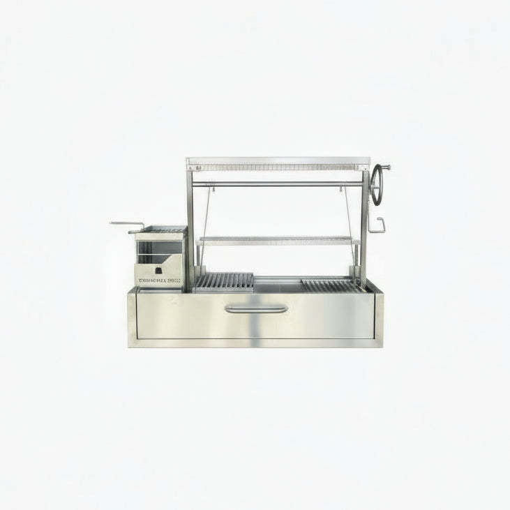 The BBQ05SS Santa Maria or Argentine Grill built in model, offers the opportunity to craft the outdoor kitchen of your dreams, serving as the built-in version of our popular BBQ03 model. This iteration is constructed entirely from 304 stainless steel, guaranteeing unparalleled performance and durability. It represents the perfect fusion of elegance and functionality, tailored for the most discerning outdoor chefs seeking to elevate their culinary landscape.