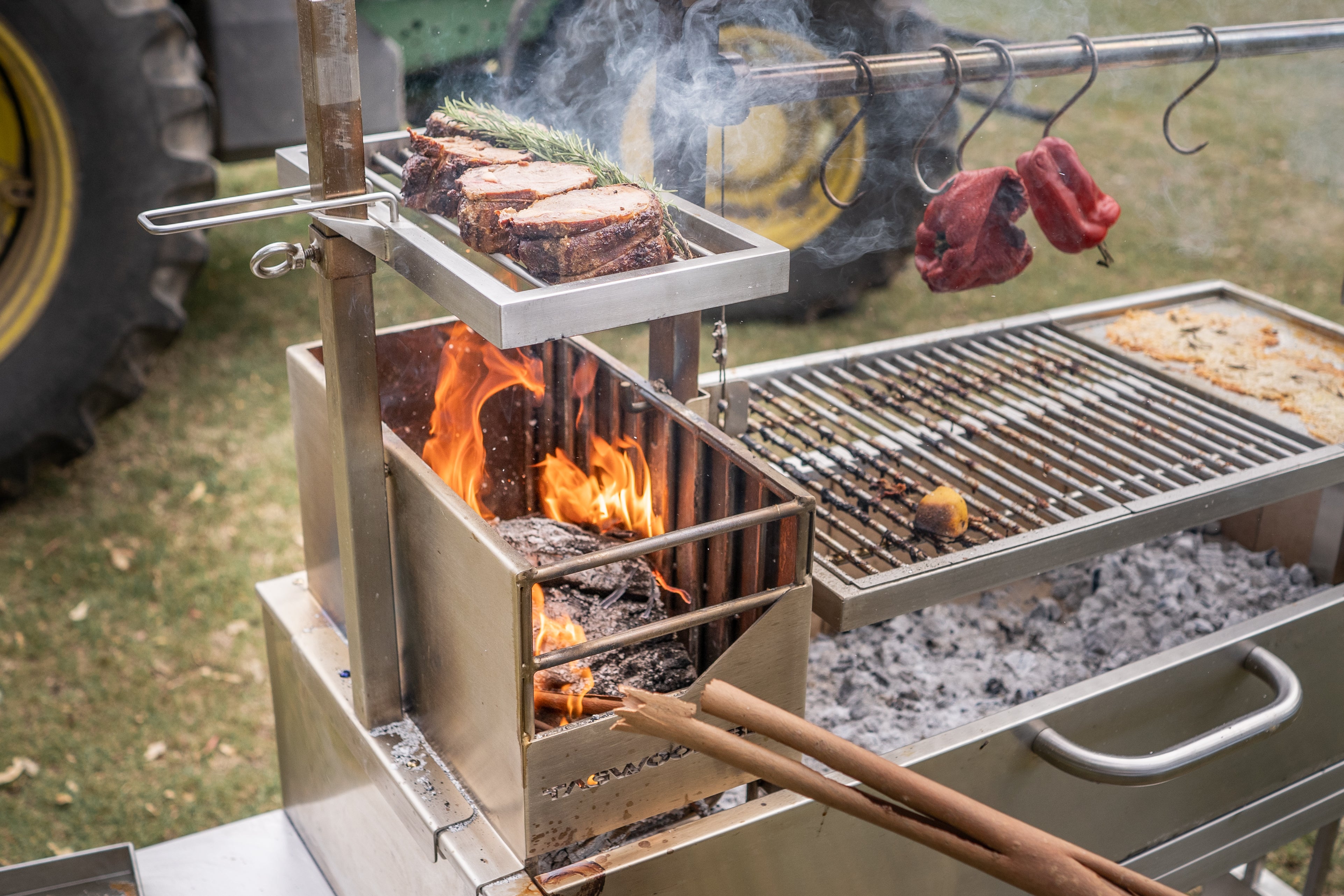 The firebox, also known as a brasero, streamlines the process of lighting wood or charcoal, making it faster and requiring less effort. It ensures the fire stays lit and keeps it distanced from the food. Whether you prefer firewood, charcoal, or a mix of both, this feature accommodates your grilling style. For optimal results, lump charcoal and firewood come highly recommended. Once the coals are adequately heated, they simply drop below, offering a straightforward and effective way to ignite the fire and grill in the authentic style of a gaucho.