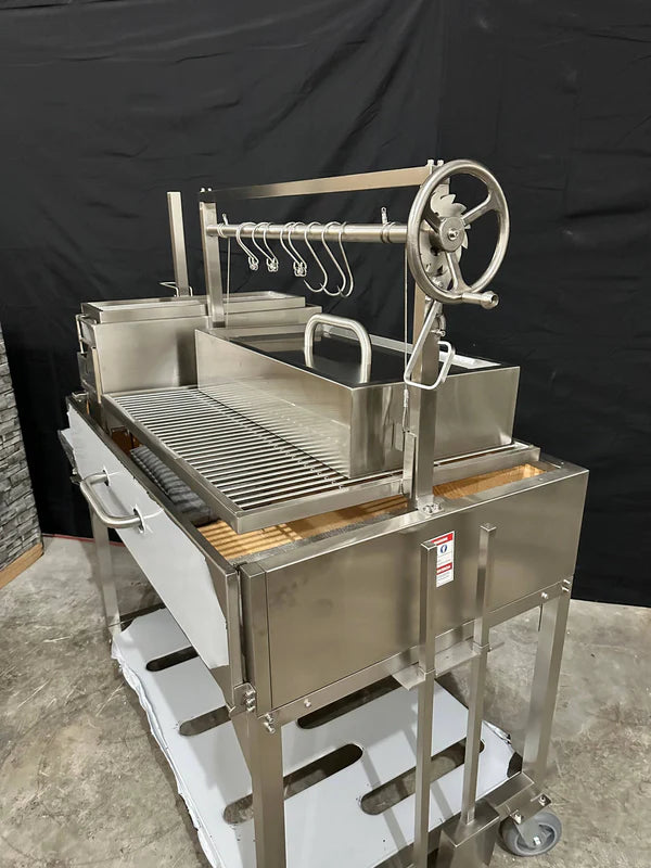 The firebox, also known as a brasero, streamlines the process of lighting wood or charcoal, making it faster and requiring less effort. It ensures the fire stays lit and keeps it distanced from the food. Whether you prefer firewood, charcoal, or a mix of both, this feature accommodates your grilling style. For optimal results, lump charcoal and firewood come highly recommended. Once the coals are adequately heated, they simply drop below, offering a straightforward and effective way to ignite the fire and grill in the authentic style of a gaucho.