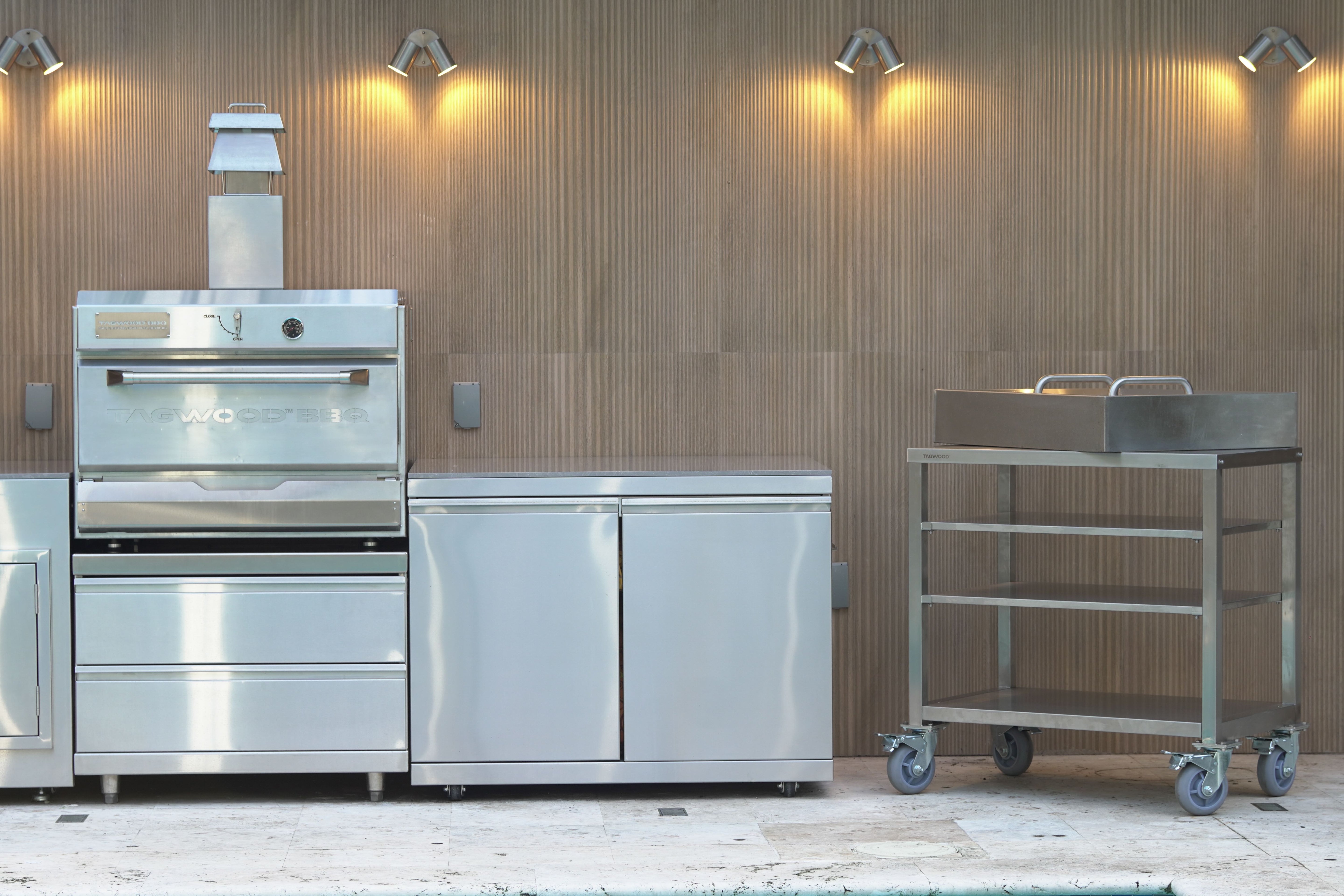 The TAG02 (90cm wide) is compatible with the TAG07 stainless steel base.
